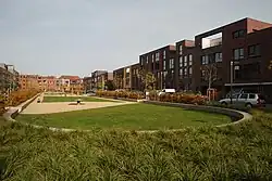 Im gesamten Baugebiet entstanden insgesamt 50 gereihte Stadthäuser und ca. 100 Geschosswohnungseinheiten.
