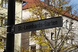 Bei der Namensgebung wurde nicht das Wort Garten im direkten Sinne benutzt. Ferner nimmt der Bestandteil St. Leonhard Bezug auf den nahe gelegenen Ort St. Leonhard.
