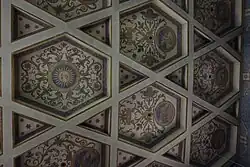 Auffällig im Innern der Kirche ist die Kassettendecke mit den Sternzeichen in den einzelnen Feldern. Das Muster der Kassettendecke hatte Lassaulx dem Bodenbelag der Matthiaskapelle auf der Oberburg Kobern entnommen. Das Kuppelgewölbe der Apsis hatte früher eine runde mit Glas verschlossene Öffnung, sodass Licht von oben auf den Altar und Chorraum fiel, so wie es dem Zeitgeist der Architektur entsprach.[3] Der Künstler J. J. Potthast aus Wiesbaden malte 1907 die Kirche aus. Über dem Triumphbogen befindet sich ein Spruchband mit einem lateinischen Text, der in Übersetzung lautet: Dies ist das Haus Gottes und die Pforte des Himmels (1. Buch Mose 28,17). In der Kuppel des Chors sind die Zeichen der vier Evangelisten zu sehen.