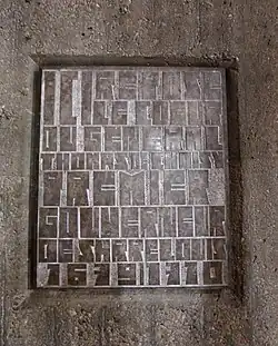 Bei den Abrissarbeiten riss eine Baggerschaufel den Teil des Kirchenmauerwerkes ein, in dem die herzförmige Bleikapsel mit dem Herz des ersten Saarlouiser Festungsgouverneurs[20] Thomas de Choisy eingelassen war. Dabei wurde die bleierne Umhüllung beschädigt. Das Herz und seine übrigen Eingeweide waren am 26. Februar 1710 auf Choisys persönlichen Wunsch hin unmittelbar nach seinem Hinscheiden im Alter von 78 Jahren in der Pfarrkirche neben dem Muttergottesaltar eingemauert worden, um seine innere Verbundenheit mit seinem beruflichen Wirkungsort zu dokumentieren, während die übrigen sterblichen Überreste in die Familiengruft nach Moigneville überführt wurden. Beim neogotischen Neubau der Kirche hatte man die Kapsel unter dem Hochaltar wieder beigesetzt.[21] Die aufgerissene Bleikapsel mit dem Herzen von Thomas de Choisy wurde 1965 unter ärztlicher Aufsicht in eine neuangefertigte größere Bleiumhüllung eingelassen, mit Präparierungsflüssigkeit aufgegossen, eingeschweißt und durch einen Goldschmiedemeister mit der Inschrift versehen: „Herz des Comte Thomas de Choisy, Marquis des Moigeville, 1632–1710“.[22]