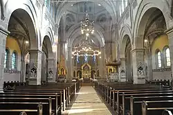 Innenansicht von St. Elisabeth in Bonn mit dem Kreuzweg nach Mettlacher Vorbild