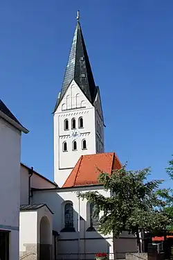 Die rechtwinkelig dem ursprünglichen Kirchenbau angegliederte moderne Saalkirche wurde zwischen 1930 und 1931 im Stil der Neuen Sachlichkeit nach Plänen von Thomas Wechs errichtet. Sie besteht aus dem mit einem flachen Satteldach bedeckten Langhaus und dem eingezogenen Chor. Das Langhaus und der Chor sind mit Flachdecken überspannt.[1]