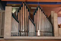 In der Anfangszeit wurde eine einmanualige Aushilfsorgel verwendet, bis im Jahr 1966 die heutige Orgel angeschafft werden konnte. Disponiert wurde das Instrument durch den Domorganisten Siegfried Hildenbrand, erbaut wurde die Orgel durch die Firma Gebrüder Späth aus Rapperswil SG. Dem Trend der 1960er Jahre folgend, besitzt das Instrument kein klassisches Orgelgehäuse, sondern lediglich Holzrahmen, die ein Gehäuse vorgeben. Der Prospekt ist mitraähnlich gestaltet und besteht aus Pfeifen der Register Flötbass 16′ und Praestant 8′. Wegen Platzmangels mussten einige Pfeifen liegend platziert werden. Das Instrument besitzt 1640 Pfeifen auf 24 Registern.[8]