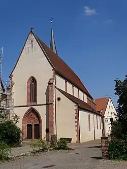 Das älteste Bauteil der Kirche ist der um 1340 begonnene Chor mit gotischen Maßwerkfenstern und Rippengewölbe. Der Turmsockel und das von einer Flachdecke überzogene Langhaus wurden um 1400 errichtet, die Sakristei 1463 von Balthasar von Horrheim ergänzt. Die großen Fenster auf der Südseite des Langhauses wurden 1719 eingebrochen, in den nachfolgenden Jahren wurde der heutige Turmaufbau fertiggestellt. Ein einstiges Obergeschoss der Sakristei wurde 1783 wegen Einsturzgefahr abgerissen.