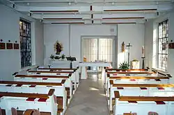 - Im Chorraum befinden sich sechs hölzerne Heiligenfiguren, deren Entstehungszeit auf ca. 1700 geschätzt wird. Sie stellen Maria Magdalena (mit Totenschädel), die Heilige Barbara (Turm), den Heiligen Wigbert (Traube und Weinfass), Robert von Molesme (Mitbegründer der Zisterzienser, mit Kirche), Katharina von Siena (Palmzweig und Kreuz) sowie die Gertrud von Helfta (mit glühendem Herzen und Kreuz) dar.[6]