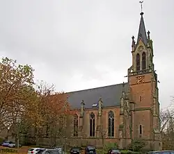 Die Kirche wurde von 1864 bis 1866 nach Plänen des Architekten Carl Friedrich Müller erbaut und erlitt im Zweiten Weltkrieg schwere Schäden. In den 1970er und 1980er Jahren wurde die Kirche verschiedenen Restaurierungen unterzogen. Im Jahr 2000 kam es zu schweren Brandschäden im Inneren, die durch spielende Kinder ausgelöst worden waren. In der Folge fand 2001 eine Innenrestaurierung statt, die von Architekt Franz-Josef Warken (Riegelsberg) geleitet wurde.[2]