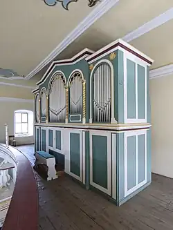 Im Kirchturm hängen drei Glocken. Die älteste Bronzeglocke ist aus dem Jahr 1833. Die Orgel stammt aus der Werkstatt von Michael Schmidt aus Schmiedefeld und wurde 1864 eingeweiht.[1] 2020/21 erfolgte eine Restaurierung. Sie verfügt über zwei Manuale und 24 Register. Im Gemeinderaum hängen zwei alte Epitaphe.