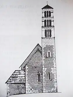Das Bauwerk erfuhr mehrere Umgestaltungen, was die genaue Bestimmung von Alter und Herkunft erschwert. Es wird angenommen, dass die Kirche im 12. Jahrhundert als einfache Basilika im romanischen Stil errichtet wurde.[1] Das Gotteshaus verfiel bis zum Ende des 14. Jahrhunderts zusehends, danach wurde es restauriert und der Geheiligten Jungfrau Marie gewidmet. Es ist nicht klar, wer die Wiederherstellung des Gebäudes in Auftrag gab; als Auftraggeber kommen entweder Franziskaner, die sich in der Gegend ansiedelten, oder Hrvoje Vukčić Hrvatinić, der führende Magnat des Königreichs Bosnien sowie Stadtgründer von Jajce, in Frage.[2]