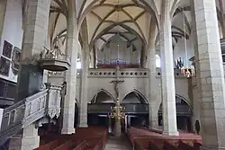 Die Taufe in achteckiger Kelchform stammt aus dem 14. Jahrhundert. Die Triumphkreuzgruppe aus der Zeit um 1400 wurde nach einer Restaurierung 1935 wieder im Triumphbogen angebracht. Sie zeigt lebensgroße qualitätvolle Schnitzfiguren.