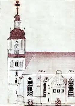 Bereits 1594 und 1656 war der Kirchturm renoviert worden, als um 1720 eine weitere Reparatur anstand. Erst 1738 war diese vollbracht und der Turm erhielt eine barocke Haube. 1854 war er wieder baufällig und Teile auch schon eingestürzt. Er wurde abgetragen und nach Plänen von Friedrich August Ritter (1795–1869) von 1856 bis 1859 ein höherer neugotischer errichtet. Da die Stadt den Bau finanzierte, ist er städtisches Eigentum. Er wird mitunter auch als Stadtturm bezeichnet und auch von der Stadt als Ausstellungsraum genutzt.[5]
