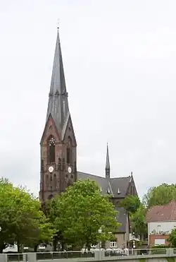 Der Dombaumeister Wilhelm Rincklake entwarf eine Kirche in klassischen gotischen Formen. Er folgte dem Basilikaschema mit dreischiffigem Langhaus, Querhaus, Chor und 5/8-Apsis als Ostabschluss. Den Chor flankieren zwei Seitenkapellen. Im Westen erhebt sich über dem Hauptportal der quadratische Glockenturm mit schlankem Kegel-Helm. Die Gesamtlänge der Kirche beträgt 66 m. Der Turm ist mit Kreuz und Hahn 83 m hoch und zählt damit zu den 100 höchsten Kirchtürmen Deutschlands.
