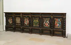An der Westwand befinden sich seit 1966 die Reste der Brüstung eines vermutlichen Bürgermeisterstuhls von 1692. Dieser befand sich bis 1964 auf einem Podest unterhalb der Schwalbennestorgel an der Ostwand. Eine kleine Treppe mit vier Stufen und Holzgeländer führte zu diesem Podest, das von einer Brüstung mit acht mal drei Holzfeldern, getrennt durch gedrehte Säulen, umgeben war. Nach dem Abbau wurden die nicht bemalten Felder entfernt, die verbleibende Brüstung ist nun noch etwa vier Meter lang und 1,33 Meter hoch. Die Wappen und Inschriften sind im Jahr 1912 restauriert worden. Das erste Feld zeigt das Wappen von Tilhen Von Leese und die Initialen G.I.T.V.L. (Gottschalck Iohan Tilhen Von Leese). Im zweiten Feld ist das Spiegelmonogramm Von Leeses mit der Jahresbezeichnung Anno 1692 zu sehen. Im dritten Feld wiederum das Wappen, allerdings gespiegelt zum ersten Feld, dazu die Initialen T.L.T.F.V.L. In den Folgefeldern die Wappen und Namen der Herren V(on) D(er) Wipper, Grote und Derendal. In den ersten drei Sockelfeldern befindet sich die lateinische Inschrift PRÆSTANT ÆTERNA CADUCIS (deutsch Ewiges geht über Vergängliches[3]).[4]