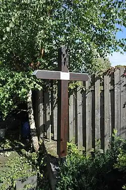 Neben der Kirche steht das „Iglauer Holzkreuz“, ehemaliges Turmkreuz der Notkirche in Hebel und wurde von Pfarrer Thonhofer nach Ebeleben geholt.[8]
