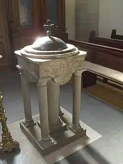 - Bernhard Witte stiftete im Jahr 1665 den Taufstein, der im südlichen Querhaus steht. Der Unterbau ist allerdings nicht im Original erhalten, er wurde nach Vorlage ähnlicher Taufsteine rekonstruiert. Das Taufbecken trägt eine lateinische Inschrift, die übersetzt folgendermaßen lautet: