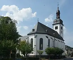 Wie der Vorgängerbau ist die heutige Hallenkirche nicht geostet, sondern bedingt durch die beengten Verhältnisse im alten Ortszentrum nach Südosten ausgerichtet. Als Architekt wird Philipp Honorius Ravensteyn, der Trierer Hofbaumeister, angenommen.[3]