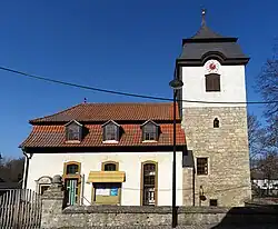 Die aus dem Jahr 1260 stammende spätromanische Saalkirche wurde nach einem Brand im Jahr 1780 im folgenden Jahr an der gleichen Stelle neu errichtet. Die unteren Geschosse des eingezogenen, annähernd quadratischen Chorturms hatten den Brand überstanden. In ihm befinden sich kleine Lichtöffnungen von ganz unterschiedlicher Gestalt. Das oberste Geschoss, das den Glockenstuhl und die Turmuhr beherbergt, kam beim Wiederaufbau hinzu. Es hat neuzeitliche Rechteckfenster. Bedeckt ist der Turm mit einem gestaffelten Pyramidendach, das von einer Turmkugel und einem Wetterhahn bekrönt ist. Das Langhaus über drei Achsen ist mit einem Mansarddach bedeckt, das auf den Längsseiten je drei Dachgauben hat.