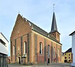 Der Backsteinsaal mit einem dreiseitigen Ostschluss und einem daran anschließenden dreigeschossigen Choranschlussturm wurde durch die Abtei Knechtsteden als Patronatsherr erbaut. Die Sakristei ist angebaut. Das Südportal ist mit 1765 bezeichnet. Die Westfassade mit einem geschweiften Giebel ist durch Pilaster gegliedert. Die Rokokoausstattung mit Hauptaltar, Nebenaltären und der Schranke wurde 1772 angeschafft. Die Orgel wurde in der zweiten Hälfte des 18. Jahrhunderts eingebaut. Das Alter der Kanzel und der Beichtstühle ist nicht belegt.