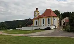 In der Barockzeit wurde 1740 bis 1747 eine größere Wallfahrtskirche in Form eines achtseitigen Zentralbaus, in der Außenfassade durch toskanische Pilaster gegliedert, errichtet. Den Stuck fertigte Johann Michael Berg, Bruder des Eichstätter Hofstuckators Johann Jakob Berg. 1750 musste der Turm aus statischen Gründen um die Hälfte erniedrigt werden. Um die gleiche Zeit wurde der Hochaltar aufgestellt. 1783 wurden die Reliquien der drei Heiligen in eine Mauernische auf der Evangelienseite übertragen. Zahlreiche Votivbilder bezeugen die Beliebtheit der drei Heiligen.