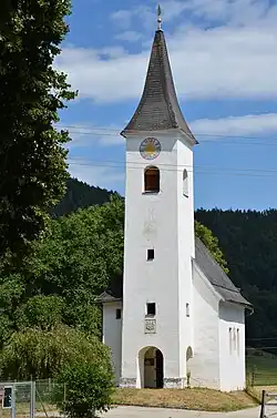 Urkundlich wurde im Jahr 1616 eine Kirche genannt. Die Kirche wurde 1756 nach einem Brand wieder aufgebaut. 1999 erfolgte eine Außenrestaurierung.