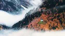 Die Kapelle St. Martin liegt an der Flanke des Nördersberges südlich von Laas (Südtirol) am Eingang des Laaser Tals.
