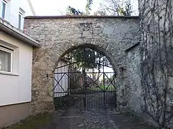 Der Zugang vom Dorf zum Kirchhof erfolgt durch einen Torbogen. Die Mauer des Kirchhofes enthält mehrere Grabsteine aus dem Zeitraum von der Mitte des 16. bis zum Anfang des 17. Jahrhunderts. Bemerkenswert sind die fast in Lebensgröße gestalteten Reliefs betender Menschen. Mehrere der Grabsteine wurden für Mitglieder der Familie von Berndes gesetzt.