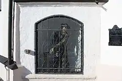 An der südlichen Außenfassade befinden sich zwei Epitaphien für Priester. Die Sandsteinplatte stammt aus dem Jahr 1741, aus dem Jahr 1764 das Epitaph aus Solnhofener Plattenkalk.[4]