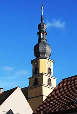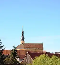Im Zweiten Weltkrieg beschädigten am 5. April 1945 Tiefflieger die Kirche stark. Sie wurde in den Jahren 1945–1948 wiederaufgebaut, wobei man den ursprünglichen Zustand wiederherzustellen versuchte. Die barocke Ausstattung der Kirche war jedoch für immer verloren. Die Gottesdienste fanden inzwischen in einer Baracke im Ort statt. Am Turm wurde noch bis ins Jahr 1965 gebaut; man erhöhte ihn um ein Geschoss, erneuerte Uhren und Glocken und setzte ihm 1965 eine neue Kuppel auf.