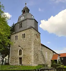 Die Kirche wurde 1703 an Stelle eines Vorgängerbaus errichtet. Der Kirchturm wurde bereits 1698 umgebaut. Bis 1775 wurde hier die Familie von Mülverstedt in ausgemauerten Grabstätten beigesetzt. Die Grabplatten wurden 1949 bei Arbeiten am Fußboden der Kirche an der Kirchenwand aufgestellt.