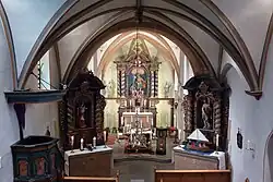 Das Chorgewölbe wurde 1990 neu ausgemalt. Größere Fragmente gotischer Wandmalerei sind an der Südwand der Sakristei und am rechten Konchenbogen erhalten geblieben.