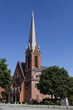 Sie ist ein in neugotischen Formen gehaltener Backsteinbau, der im Wesentlichen dem Eisenacher Regulativ folgt, mit einem breiten, vier Joche umfassenden Hauptschiff und einem schmalen dreijochigen Seitenschiff an Südseite mit einer umlaufenden Empore. Der Turm ist südwestlich in die Ecke zwischen Seitenschiff und Hauptschiff eingestellt. Das Seitenschiff hat jochweise quergestellte Giebeldächer. Die Kirche hat einen polygonalen, vom Hauptschiff abgesetzten Chorraum und zur Schwartauer Allee hin eine schmale dreijochige Vorhalle. Der Innenraum ist durch breite Kreuzrippengewölbe überspannt.