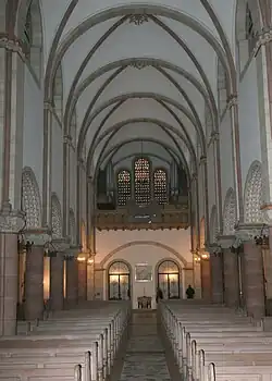Die Firma Johannes Klais Orgelbau wurde damit beauftragt, eine Orgel für die Kirche zu bauen. Man rechnete mit Kosten von 120.000 Reichsmark. 1921 konnte der erste Bauabschnitt fertiggestellt werden. Wegen finanzieller Unsicherheiten wurde der zweite Teil erst 1941 bestellt. Da allerdings die Werkstatt von Klais 1944 zerbombt wurde, wurden die weiteren Orgelelemente zerstört. Der unfertige erste Teil der Orgel wurde 1958, nach Fertigstellung der Stockmannorgel, nach Kreuztal verkauft, wo sie in umgebauter Form bis in die Mitte der 1990er Jahre Dienst tat.