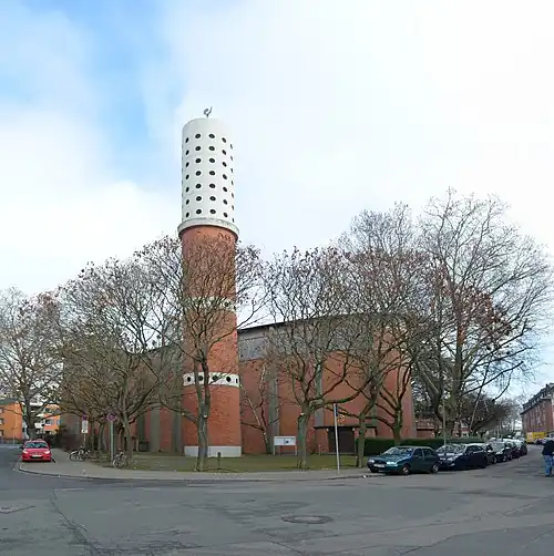 - ↑ Karin Berkemann: Nachkriegskirchen in Frankfurt am Main (1945–1976). In: Landesamt für Denkmalpflege Hessen (Hrsg.): Denkmaltopographie Bundesrepublik Deutschland. Kulturdenkmäler in Hessen. Theiss, Stuttgart 2013, ISBN 978-3-8062-2812-0, S. 164–167.