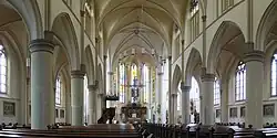 Die bauzeitliche Ausstattung schuf Friedrich Wilhelm Mengelberg. Sie umfasst u. a. einen figurenreichen Flügelaltar sowie zwei kleinere Seitenaltäre, ein Triumphkreuz, eine Kanzel mit Relief- und Dekorationsschnitzereien, einen Kreuzweg aus Sandsteinreliefs und zahlreiche Heiligenstatuen. Die modernen Buntglasfenster des Altarraums und der Taufkapelle stammen von Jan Murk de Vries (1919–2015).
