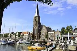 Ende des 18. Jahrhunderts[1] bildete sich im seit der Reformation protestantischen Harlingen wieder eine katholische Gemeinde. Die Gottesdienste wurden in einer von außen nicht erkennbaren Kapelle am Zuiderhaven gefeiert. Nachdem die Gemeinde gewachsen und die Finanzierung möglich geworden war, begann 1879 der Bau der repräsentativen und ortsbildprägenden Kirche mit Nebengebäuden auf demselben Grundstück. Das Erzengel-Michael-Patrozinium wurde von der Grote Kerk übernommen, die es seit der Reformation nicht mehr führt. Die Kirchweihe erfolgte am 31. Mai 1881.