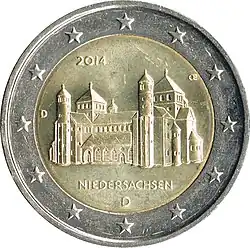 - ↑ Ausgabe der 2 Euro-Sondermünze Niedersachsen Motiv: Michaeliskirche in Hildesheim. In: niedersachsen.de. 2014, abgerufen am 13. August 2024.