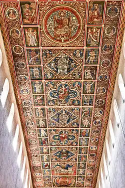 - ↑ Ulfrid Müller: Ein schwieriger und langer Weg vom Baum im Wald bis zur fertig bemalten Decke. In: Die Bilderdecke der Hildesheimer Michaeliskirche. Erforschung eines Weltkulturerbes. Aktuelle Befunde der Denkmalpflege im Rahmen der interdisziplinären Bestandssicherung und Erhaltungsplanung der Deckenmalerei. Hrsg. Rolf-Jürgen Grote. Deutscher Kunstverlag, München 2002, ISBN 978-3-422-06401-0, S. 78 f.