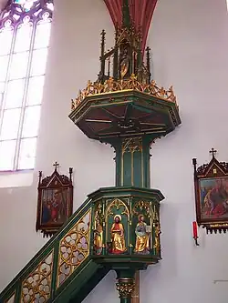 Zu den Besonderheiten der Kirche zählen die bunten figürlichen Spitzbogenfenster im Altarraum. Überdies ist das Bauwerk ähnlich dem Regensburger Dom profiliert und seit der Erbauung unverändert in Außen- und Innengestalt.