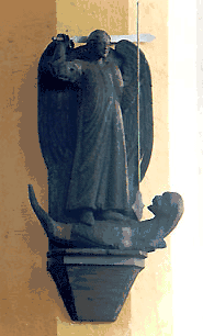 Brautportal mit Posaunenchor im geöffneten Bogenfeld -