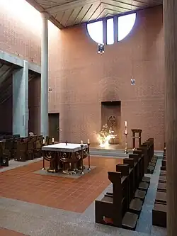 In die Nordseite des Innenraums fügt sich die 1993 von der österreichischen Orgelbaufirma Rieger gebaute Orgel mit 17 Registern auf zwei Manualen und Pedal farblich und stilistisch in das architektonische Konzept ein.[1]