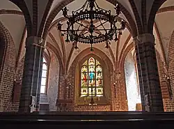 Im Hochchor stehen das neugotische Altarretabel mit einer Kopie der Beweinung Christi nach Julius Wilhelm Rotermund und ein Taufbecken aus Sandstein von 1872.