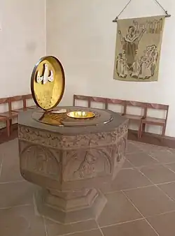 Zur Ausstattung der Kirche gehört ein auf ca. 1230/1240 datiertes Triumphkreuz.