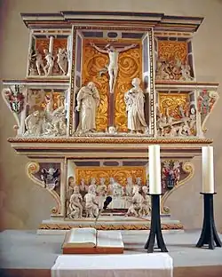 Der Spätrenaissance-Altar ist durch die besonders plastisch aus Sandstein gearbeitete Passionsgeschichte einzigartig in der Region; er hat den Aufbau eines Flügelaltars und steht unter Denkmalschutz.