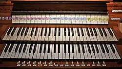 - Spieltisch: Spieltisch mit Blick auf den Altarraum, Registerwippen
