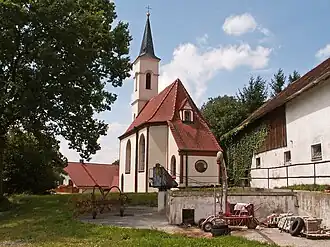 Die im Kern spätmittelalterliche Saalkirche wurde von 1768 bis 1775 barock umgestaltet. An das Langhaus schließt sich im Osten ein dreiseitig geschlossener Chor mit an der Stirnseite angebauter Sakristei an. Im Westen steht der Kirchturm, der um 1870 mit einem spitzen Helm bedeckt wurde.