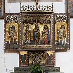 Auf der gleichen Seite steht ein spätgotischer Flügelaltar (um 1500), der aus der Johanniterkirche in Tarsch stammt und um 1888 im Antiquitätenhandel erworben wurde. Er soll ursprünglich ein von Hans Schnatterpeck geschaffener Medardusaltar gewesen sein und wurde 1890–1891 von Josef Waßler restauriert. Im Schrein sind die Figuren der Maria mit Kind, ein Diakon (möglicherweise der heilige Stephanus) und Bartholomäus zu sehen, an den Flügeln sind innen der heilige Georg und der heilige Mauritius als Reliefs, außen Johannes der Evangelist und der heilige Sebastian dargestellt. In der Predella befindet sich ein geschnitztes Vesperbild mit Johannes und Maria Magdalena, flankiert von den Bildern der heiligen Ottilia und Apollonia.