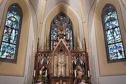 Der neogotische Hochaltar entstand im 19. Jahrhundert und besitzt einen reich verzierten Tabernakel. Der Zelebrationsaltar wurde 1976 von dem Adenauer Künstler Georg Gehring geschaffen. Er stellt den brennenden Dornbusch als Zeichen der Gegenwart Gottes dar.