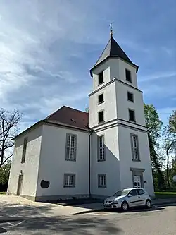 Die Querkirche wurde von 1774 bis 1776 nach vereinfachten Plänen von Johann Friedrich Weyhing anstelle einer Kapelle als evangelische Predigtkirche erbaut. Sie wurde 1908 von der katholischen Kirchengemeinde übernommen. Im Osten des quergelagerten, mit einem Walmdach bedeckten Langhauses steht der Kirchturm, in dessen Glockenstuhl nur eine Kirchenglocke[1] hängt. Im Westen des Langhauses befindet sich der Chor.