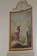 Die Malereien und Fresken im Inneren stammen von Johann Joseph Anton Huber. Der Altar wird um 1730 datiert, über der Predella ist ein gestufter Aufbau mit Gemälden von Johannes Rottenhammer zu sehen und darüber befindet sich eine geschnitzte Kreuzigungsgruppe, die Andreas Hainz zugeschrieben wird.
