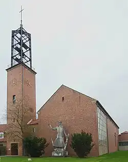 Wenige Monate nach Ende des Zweiten Weltkriegs, im September 1945, wurde das Grenzdurchgangslager Friedland eröffnet, in dem in den folgenden Jahren Hunderttausende Heimkehrer aus der Kriegsgefangenschaft ankamen. Zunächst versahen Geistliche der St.-Paulus-Kirche in Göttingen die katholische Seelsorge im Lager. Im November 1945 nahm eine Stelle des Deutschen Caritasverbandes ihre Arbeit in Friedland auf.[1] 1946 war Pater Johannes Leppich als erster katholischer Lagerpfarrer im Lager tätig. In diesem Jahr wurde in einer Nissenhütte eine katholische Lagerkapelle eingerichtet, die bis 1950 bestand. Ab 1947/48 folgte Josef Krahe (1914–2005) als Lagerpfarrer, unter dem es ab 1949 zu Planungen für einen Kirchenneubau kam. Zunächst wurde jedoch 1950 in einer Holzbaracke eine neue Kapelle eingerichtet.