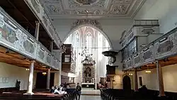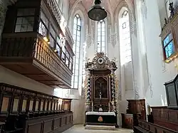 Im frühen 18. Jahrhundert wurde das Kircheninnere barockisiert, das Chorgewölbe ausgemalt und der Altar unter Verwendung der vorhandenen Bilder mit einem neuen Aufbau versehen. Das Langhaus wurde stuckiert und mit einem reichen Bildprogramm ausgestattet.